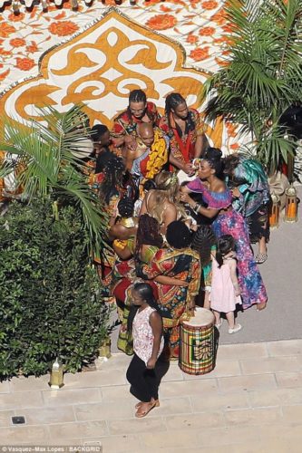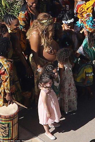 “The party was very family friendly with Blue Ivy and lots of her friends running around the grounds of the estate,” a source told the E! News. “There was a huge tent erected on the property where most of the shower took place. The decor was Fela Kuti / African themed and very colorful with lounge seating areas, floor pillows and rugs on the floor.”