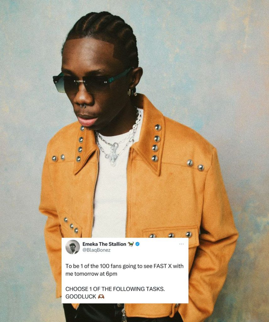 Blaqbonez is showing his appreciation for his fans’ unwavering support on his new single by inviting them to a private screening of “FAST X,” Ludacris’s newest box office smash. This is one of the ways he chooses to interact with his devoted following.