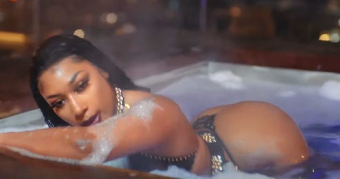 The clip, directed by Eif Rivera, opens with Megan aka Tina Snow giving some advice to her latest alter ego Suga. Later, the Houston rapper rides around the town in a Rolls-Royce and twerks in a hot tub atop a roof in the sultry video for the song which samples Tupac. Watch it above or here.