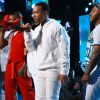 Mustard and Migos brought the waterworks during their performance at the 2019 BET Awards. Quavo, Offset, and Takeoff joined Mustard to perform their hit “Pure Water” at Sunday’s show. Decked out in all white, they came through drippin’ while dancers in raincoats made moves in front of a cascading waterfall. Offset’s wife Cardi B and Quavo’s girlfriend Saweetie were also seen turning up in the audience.