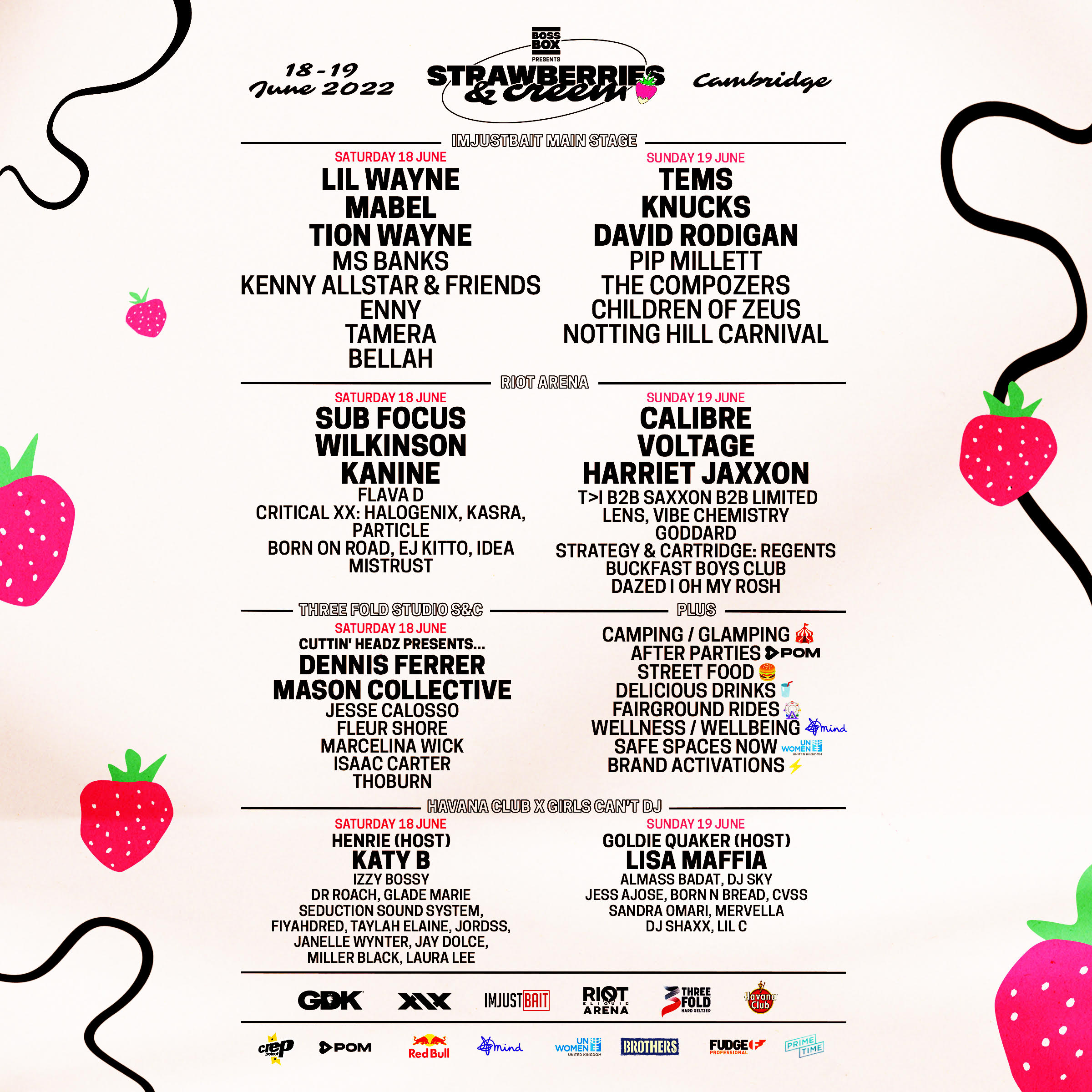 Renowned for attracting internationally-acclaimed artists and the biggest names in the business, the line-up for Strawberries & Creem on Saturday 18th June will be headlined by multi-Grammy award winning rapper Lil Wayne for what will be his first UK performance in 14 years. Chart conquering star Mabel is also confirmed for Saturday’s scheduling, plus Tion Wayne, Ms Banks, Katy B, Sub Focus, Dennis Ferrer and many more.