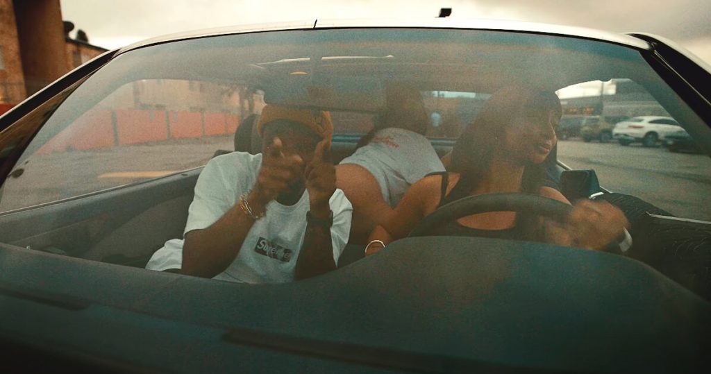 The two ride around the city in a drop and spit some braggadocious bars before meeting up at a warehouse.